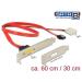 This Delock slot bracket can be installed into a free slot of your PC and enables you to lead out two internal COM ports in order to connect 2 external serial devices.