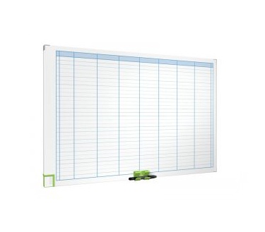 Magnetický povrch stíratelný za sucha Pomocné linie vykreslují 21 řádků a 7 sloupců plus indexový sloupec, zpřehledňují plánované akce týdne Indexové okénko pro zapsání správného data pro každý den Magnetický držák na popisovač Lehká hliníková konstrukce Integrovaná magnetická stěrka Rozměr: 900x600x27 mm Dodává se včetně popisovače, 30 kusů magnetů a montážní sady |