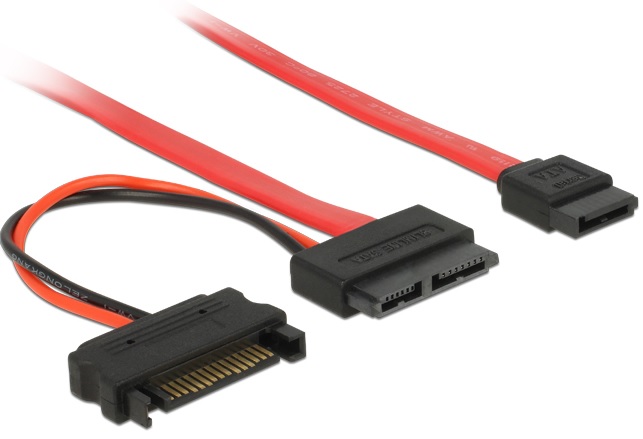 Tento Slim SATA kabel od Delock může být použit k propojení zařízení se Slim SATA portem, např. CD / DVD jednotky.
