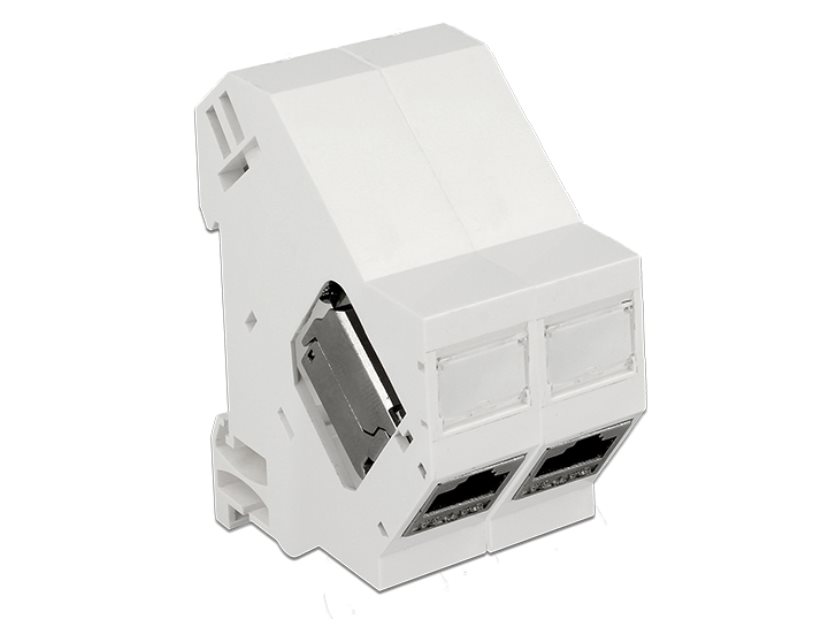 Tento Keystone držák od Delocku může být namontován na DIN lištu. S těmito standardizovanými rozměry je vhodný pro snadné uchycení jednoho Keystone modulu.