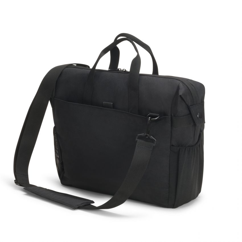 The Eco Top Traveller GO offers ideal protection for laptops. The fitall system separating wall in the notebook compartment lies protectively across your notebook and fits automatically to sizes from 13 to 15.6". The slip pocket provides reliable protection for tablets up to 12.9". The spacious main section is divided so that documents and accessories can be stored separately. Open expandable compartment for active gear such as sport shoes, helmet, yoga mat, etc. including elastic mesh side pockets and metal hook for fixation. The front pocket has practical compartments so you can organise mobile accessories like smartphone, pens or chargers. There is a document compartment at the back for easy storage of documents. Carry the bag comfortably with the handles or use the adjustable, padded shoulder strap. The bag is made of water-repellent material to protect the contents even on rainy days. The Eco Top Traveller GO is therefore perfect for you if you are always on the go and want to support the recycling of PET bottles with an eco-friendly bag. Made of 28 recycled PET bottles Padded notebook compartment with fitall system Slip pocket for tablets up to 12.9" Spacious main section with compartments for documents and accessories Front pocket with storage space for mobile accessories Open expandable compartment for active gear Mesh pocket for water bottle or umbrella inside the bag Document compartment on the back Adjustable, padded shoulder strap Water-repellent material Color black Material 600 D rPET Gucci Polyester Max. Device Measurements (mm) 385 x 35 x 265 mm Product Measurements (mm) 420 x 120 x 310 mm Weight 0.82 kg Identifikační a kontaktní údaje výrobce DICOTA GmbH Fabrikstrasse 18 73277 Owen Germany Phone: +49 7021 72508 0 info@dct.group |