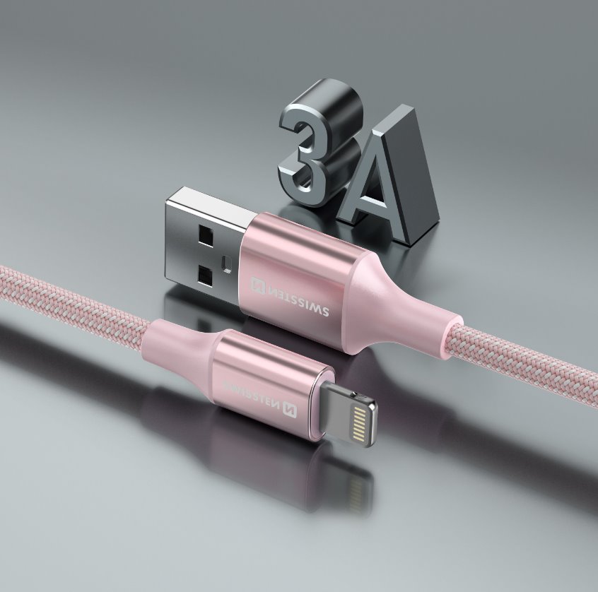 SWISSTEN DATOVÝ KABEL SWISSTEN TEXTILE II USB / LIGHTNING 1,5 M RŮŽOVÝ
