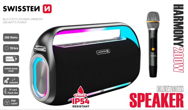 SWISSTEN BLUETOOTH REPRODUKTOR HARMONY 200W ČERNÝ
